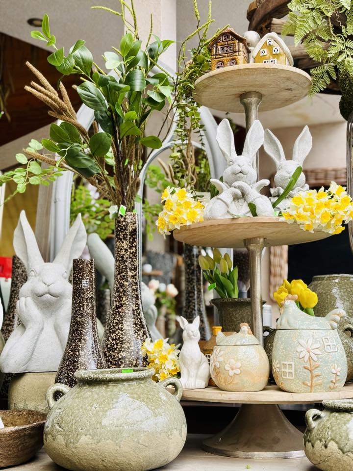 Pierwsze wiosenne akcenty już u nas są – pojawia się coraz więcej kolorowych roślin, a wraz z nimi do sklepu wkraczają także wielkanocne zające i świąteczne ozdoby. ![]()